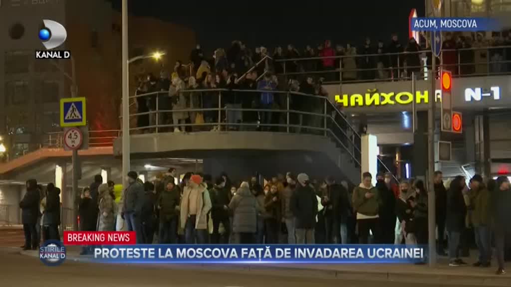 Stirea "Proteste la Moscova față de invadarea Ucrainei" difuzata in cadrul Stirilor KANAL D din 24 02 2022