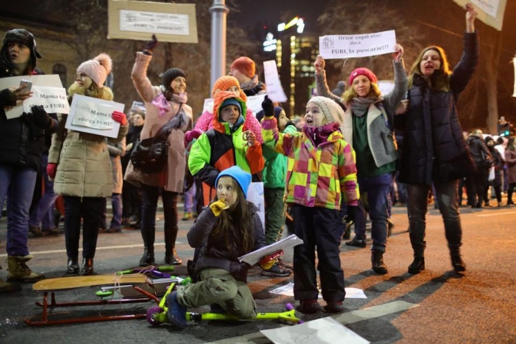 UPATE 14.21: Numarul persoanelor care au protestat in fata Guvernului a ajuns la 3.000:. "Bunicii v-au dat votul, noi nu mai punem botul", "Azi nu am tema la Istorie. Azi schimb istoria”, "Am 8 ani şi eu sunt Romania" şi "De la gradinita stiu si sa nu mint şi sa nu fur" sunt mesajele afisate de copiii protestatari. Un protest al copiilor a fost organizat si la Brasov.