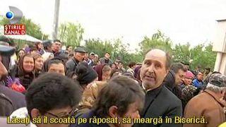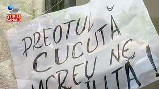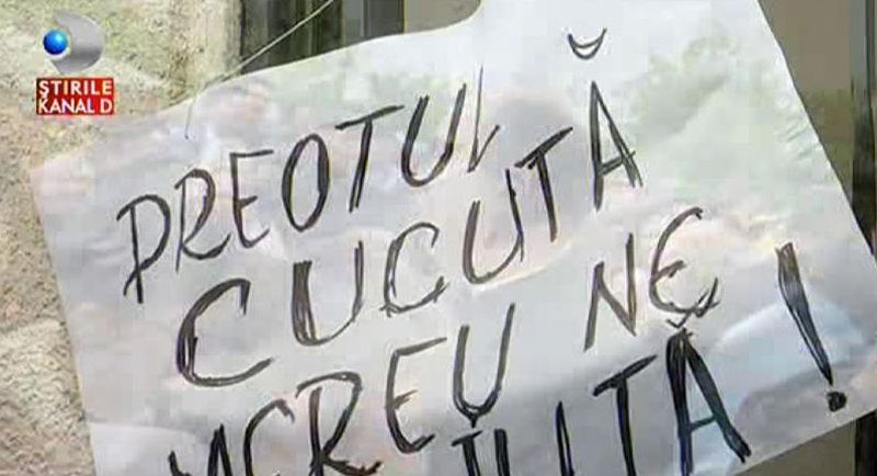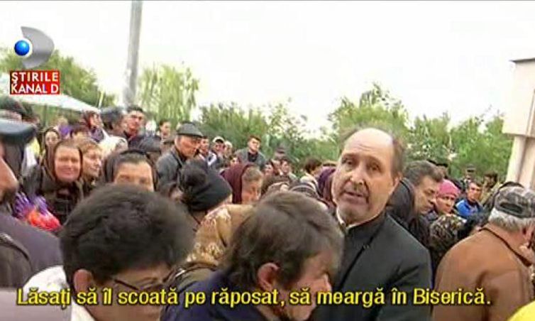 Chiar daca preotul locului- recent suspendat, i-a rugat sa se comporte decent, oamenii suparati pe situatie i-au huiduit pe parintii trimisi sa tina slujba de inmormantare.
