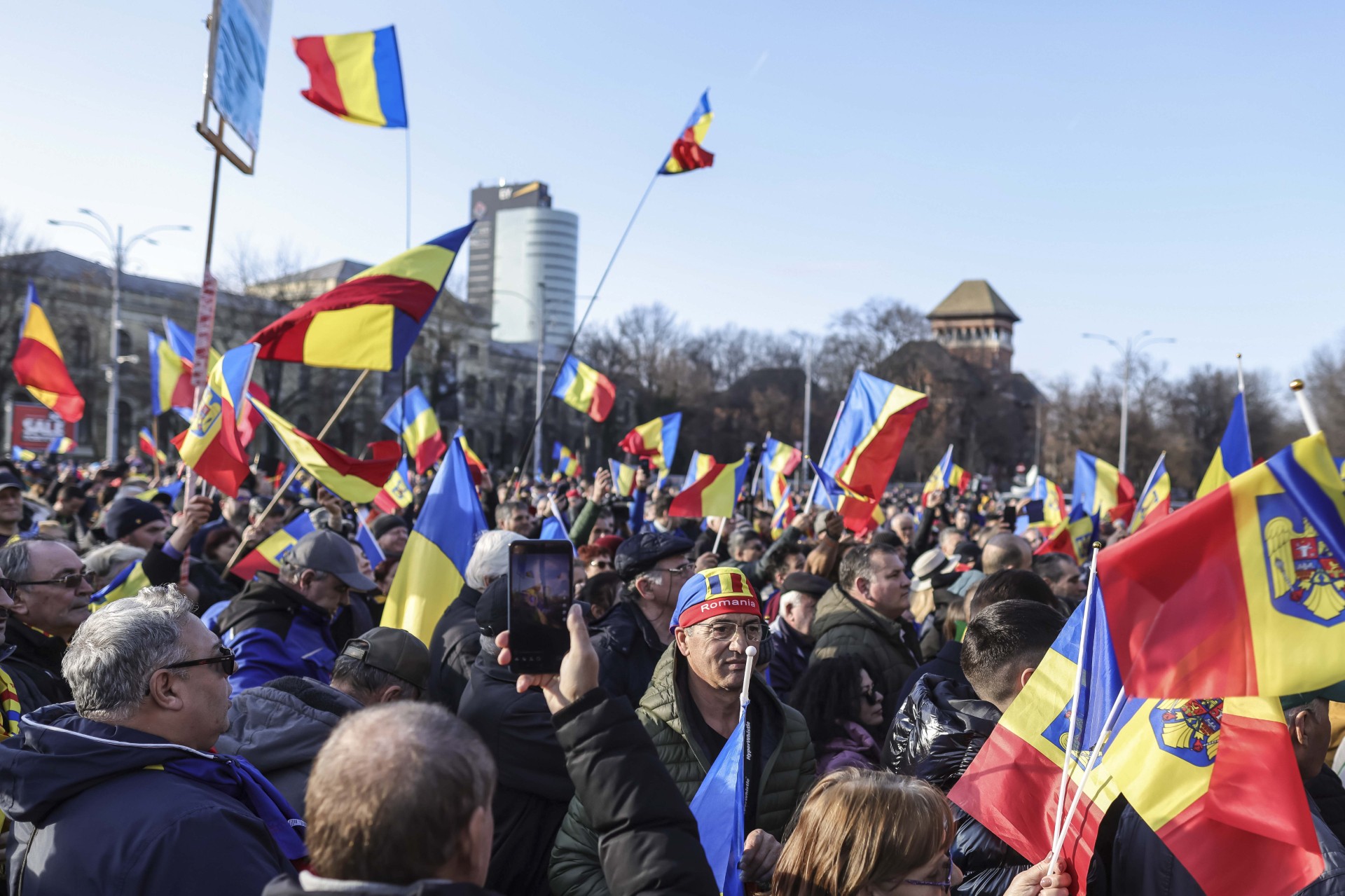 Susținătorii lui Călin Georgescu, protest după hora realizată de Mica Unire