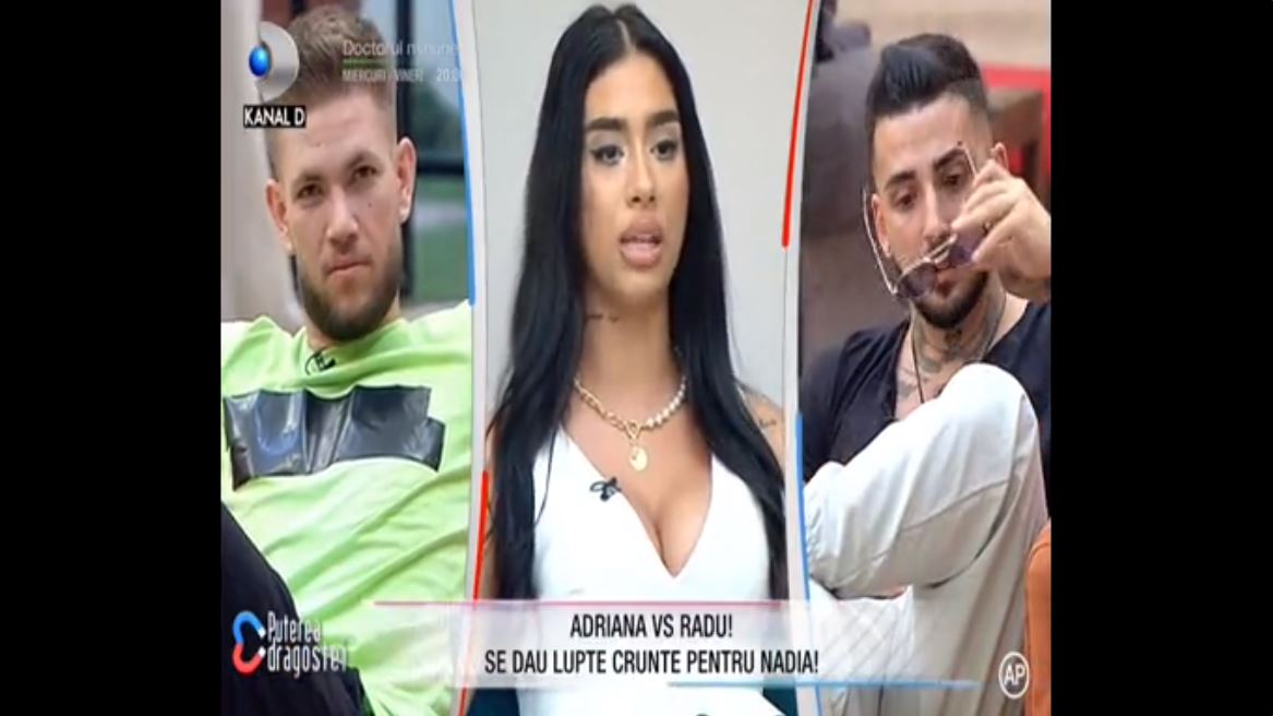 Nadia aruncă cu reproșuri la adresa lui Radu. Bruneta este convinsă că Radu nu a avut intenții serioase în a forma un cuplu cu ea, subliniând faptul că atunci când a intrat aceasta în competiție, Radu o curta pe Adriana.