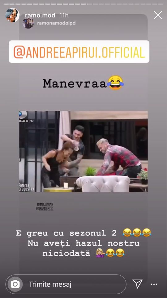 Ramona Modoi a vrut să formeze un cuplu cu Livian Pop, însă nu a reușit în cele din urmă. Prietena ei, Daiana Marcu a fost împreună cu Gabriel Vasiliu în casa „Puterea Dragostei”.
