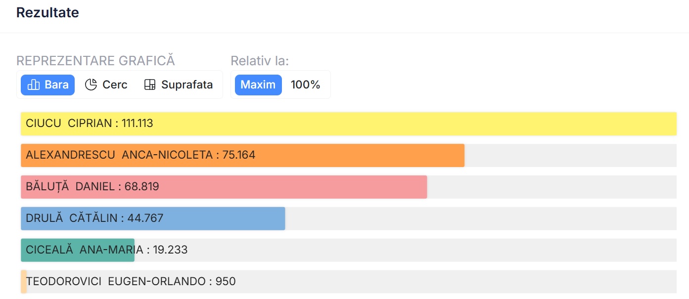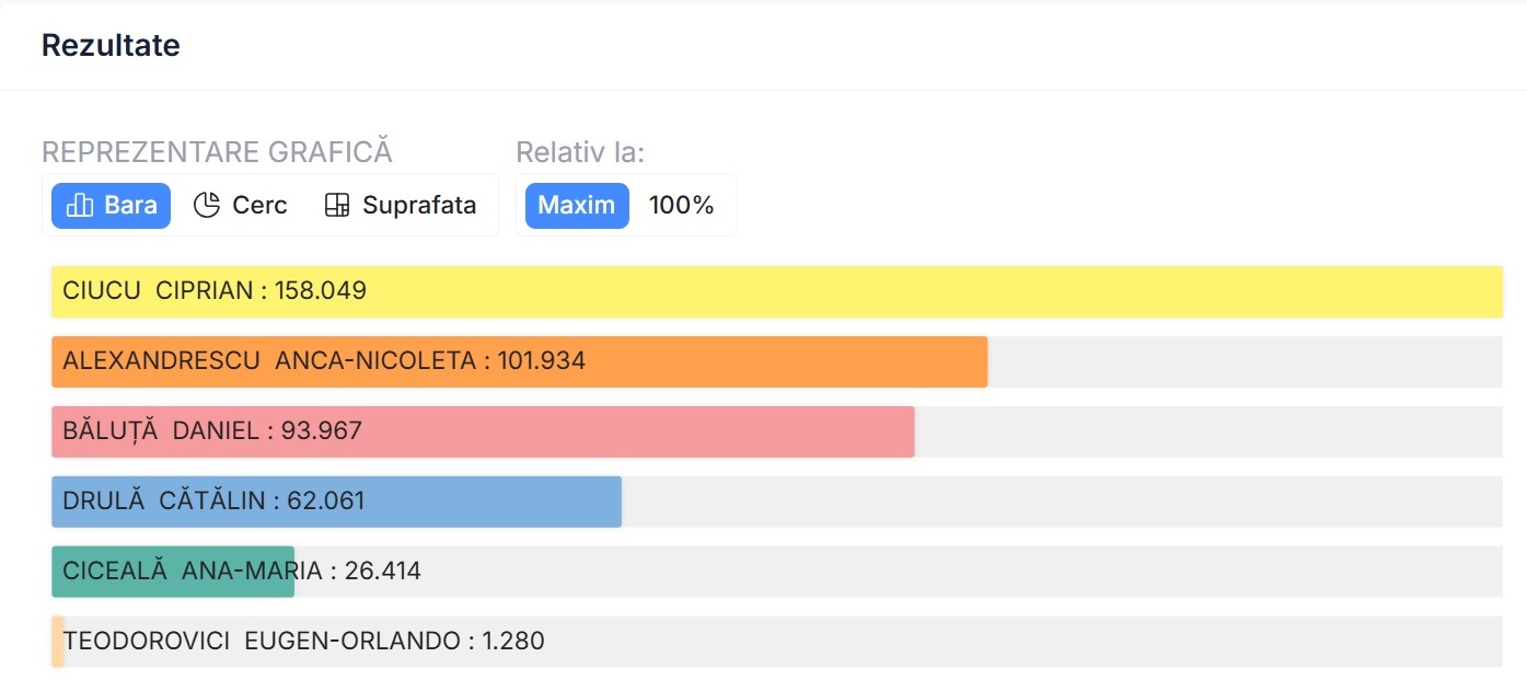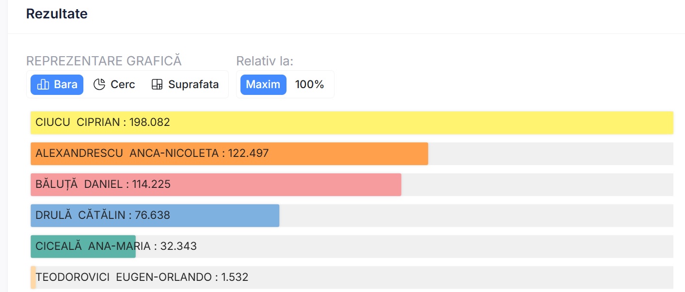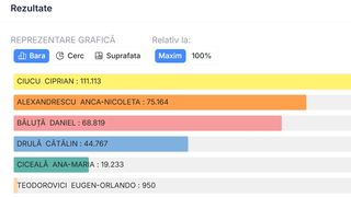 UPDATE. După centralizarea a 80% din totalul buletinelor de vot, Anca Alexandrescu a obținut peste 101.000 voturi, în timp ce Daniel Băluță a primit 93.000 de voturi.