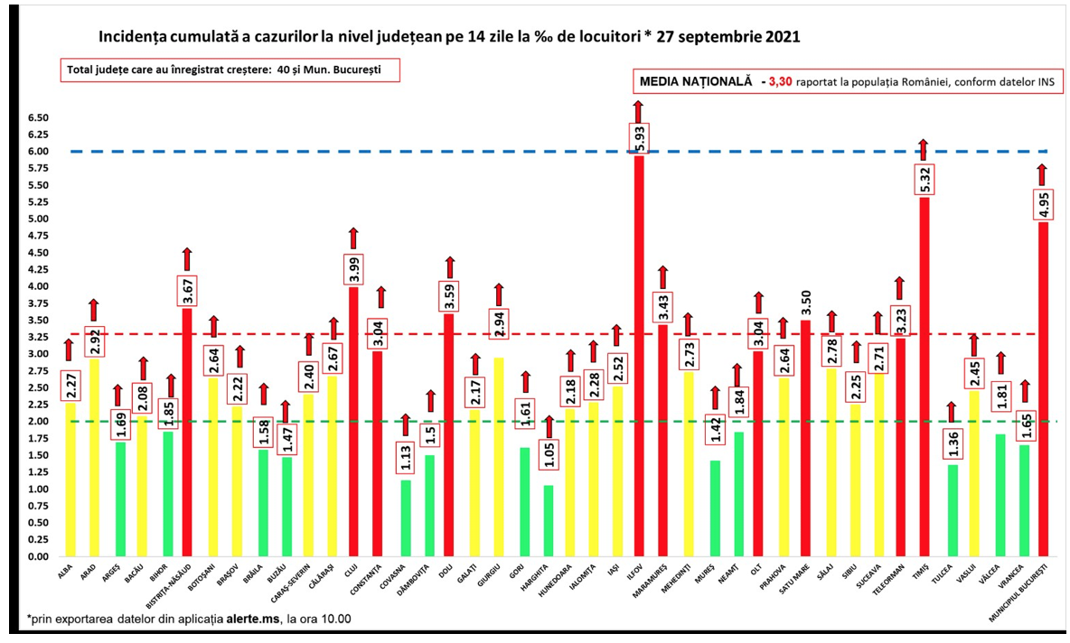 Citeste si: Bilanțul Sars-Cov-2 al zilei de 27 septembrie 2021. 5.655 de cazuri noi în România