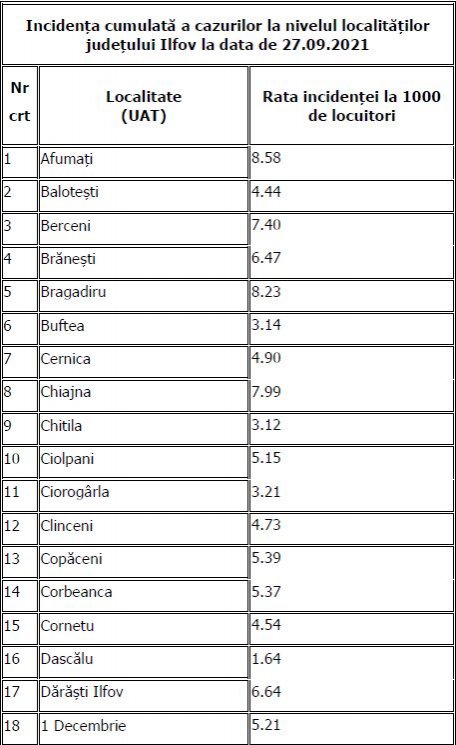 Localitate din Ilfov cu incidența de aproape 10 la mie