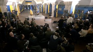 2 din 3 | Volodimir Zelenski, conferință de presă la metroul din Kiev