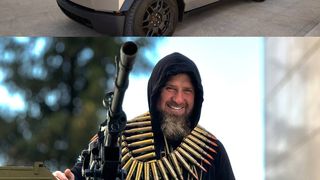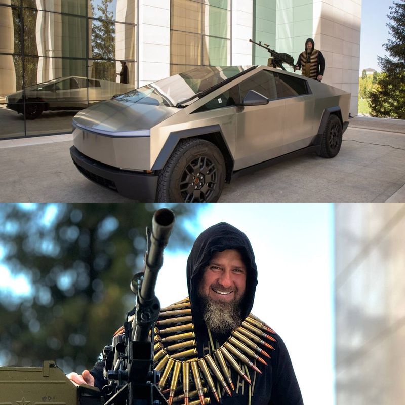 Cu o lună în urmă, Ramzan Kadîrov a făcut publică o înregistrare video în care poate fi văzut conducând o camionetă Tesla Cybertruck cu ceea ce pare a fi o mitralieră montată deasupra, afirmând că o va