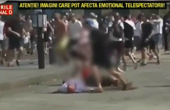 Doi suporteri se zbat intre viata si moarte dupa luptele de strada dintre huliganii rusi si cei englezi, de ieri, de la Marsilia. Violentele nu s-au incheiat nici macar pe stadion. Va avertizam ca urmeaza imagini cu un puternic impact emotional.