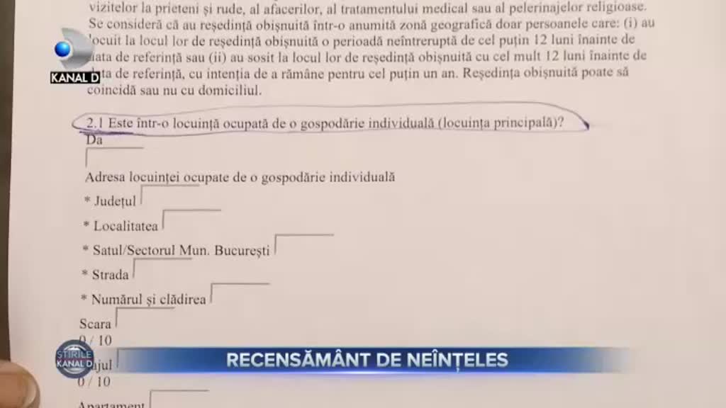 Stirea "Recensământ de neînțeles" difuzata in cadrul Stirilor KANAL D din 17 03 2022