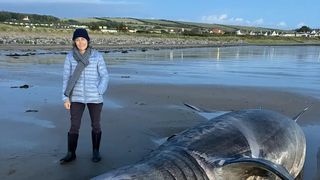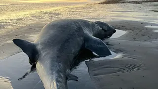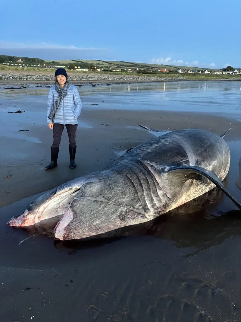 Aflată pe plajă, Yolanda McCall, din Ayrshire, a spus că este greu de spus dacă animalul marin este încă în viață pe țărm sau a murit deja.