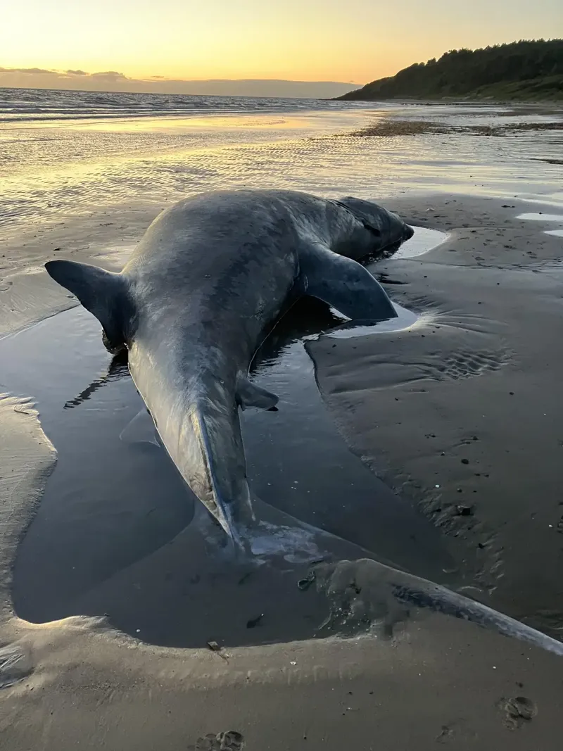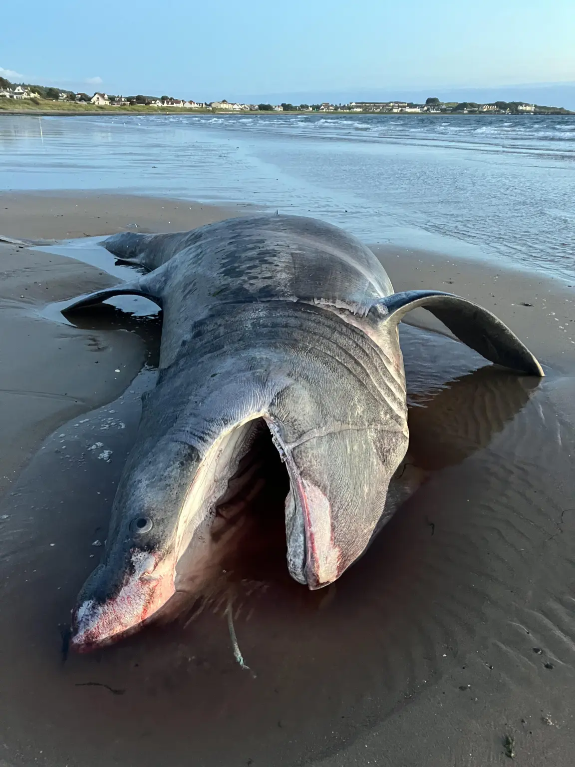 Carcasa unui rechin maximus sau basking – al doilea cel mai mare pește viu din mare după balene – a fost văzut zbătându-se în apele de pe plaja Maidens din Scoția.