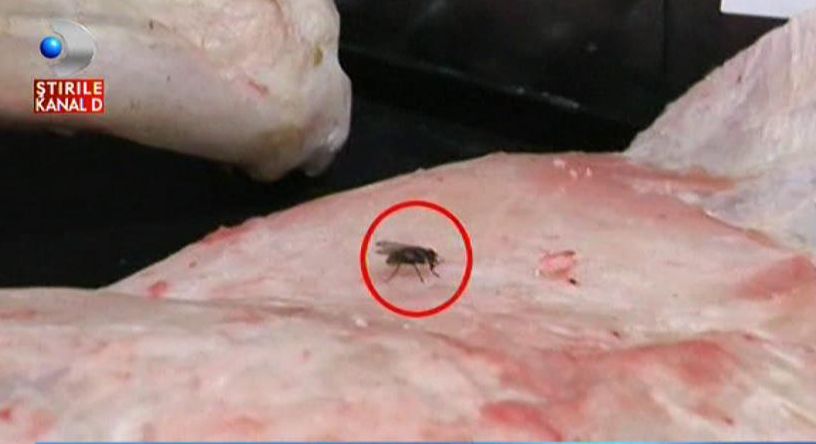 Din nefericire nu este un caz izolat. In mai toata tara situatia este aceeasi. In pietele din Galati sau din Timisoara in macelarii carnea se invineteste la temperatura camerei, iar tejghele pline de resturi devin paradisul mustelor.