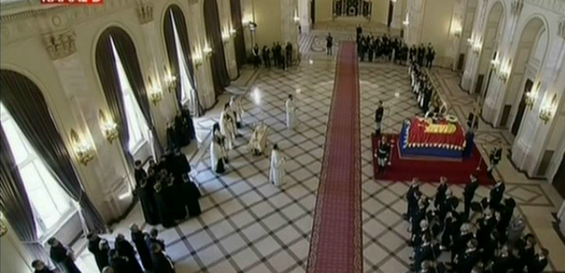 O regina care vrea pana in ultima clipa sa ii impace pe toti. Sa plece in armonie spre cele vesnice. Familia are grija ca ceremoniile de inmormantare sa respecte intocmai funeraliile regale. In Palatul Regal, Patriarhul Daniel oficiaza prima slujba: cea ortodoxa.