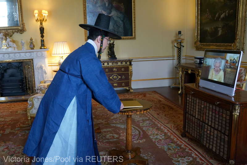 Marţi, regina Marii Britanii a participat la două audienţe organizate în format virtual. Acestea au constat în primirea noilor ambasadori ai Coreii de Sud şi Elveţiei. Mai multe fotografii realizate în timpul acestui eveniment public o arată pe suverană purtând o ţinută vestimentară galbenă şi fiind, ca de obicei, zâmbitoare.