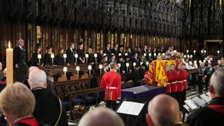 Funeraliile de stat au avut la ora 12, într-o ceremonie privată, la Abaţia Westminster, unde vor fi prezenți peste 2.000 de invitați. Președintele României, Klaus Iohannis, participă la procesiune, alături de peste 500 de șefi de stat.