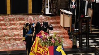 2 din 13 | Regele Charles al III-lea, în spatele sicriului mamei sale de la Westminster Hall până la Westminster Abbey