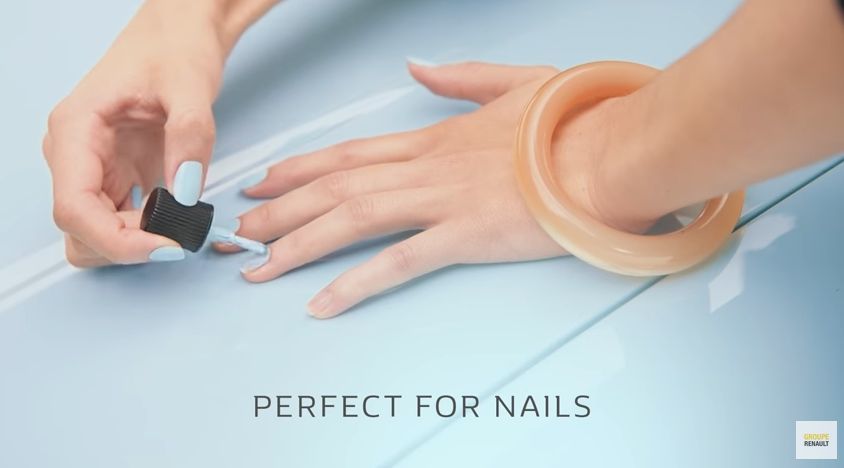 Intr-o reclama a Renault, o femeie striga "au" cand observa o zgarietura pe masina sa Twingo parcata intre doua vehicule. Apoi ea isi vopseste o unghie in albastru, inainte de a masca cu aceeasi pensula zgarietura de pe masina.