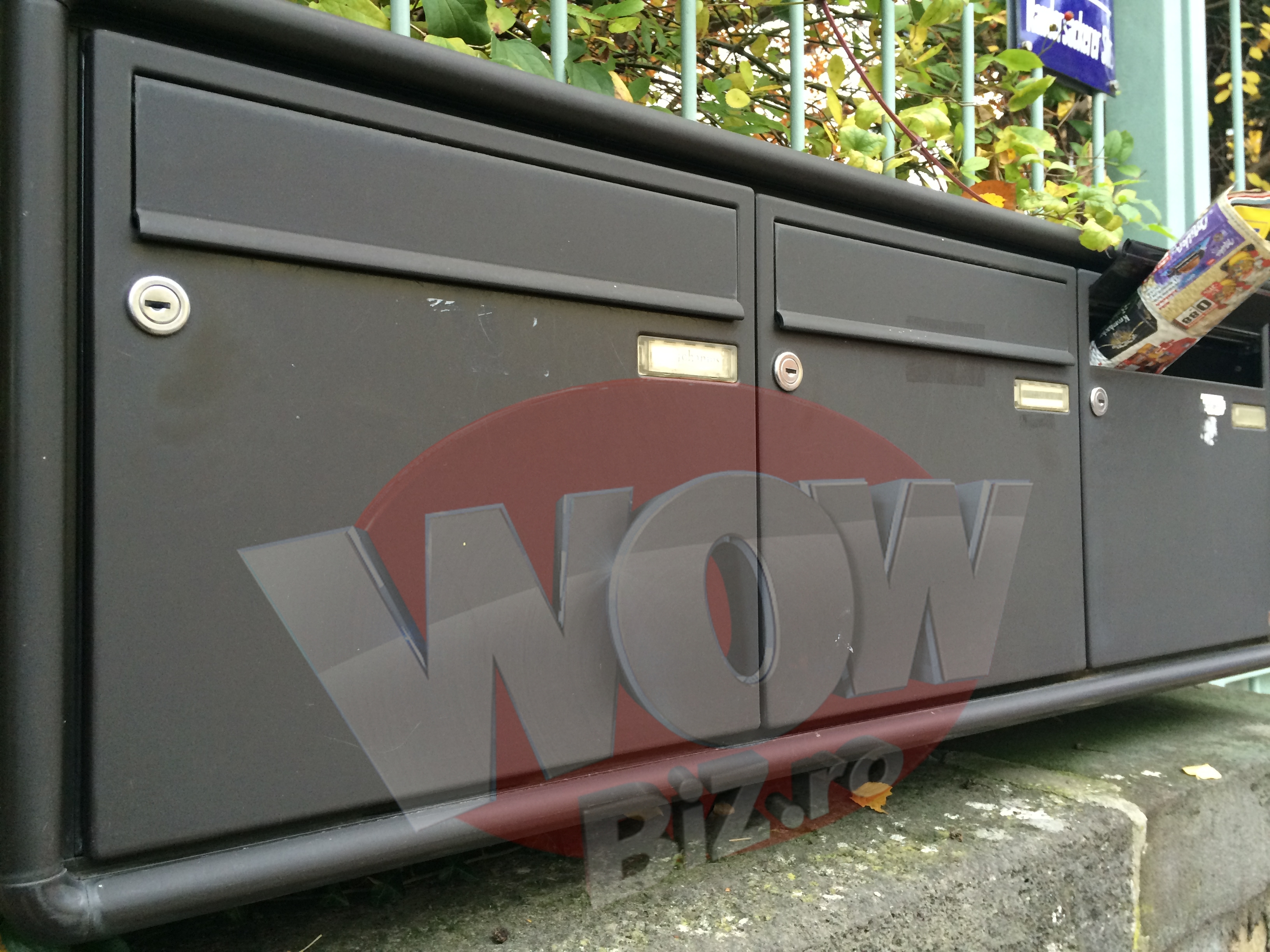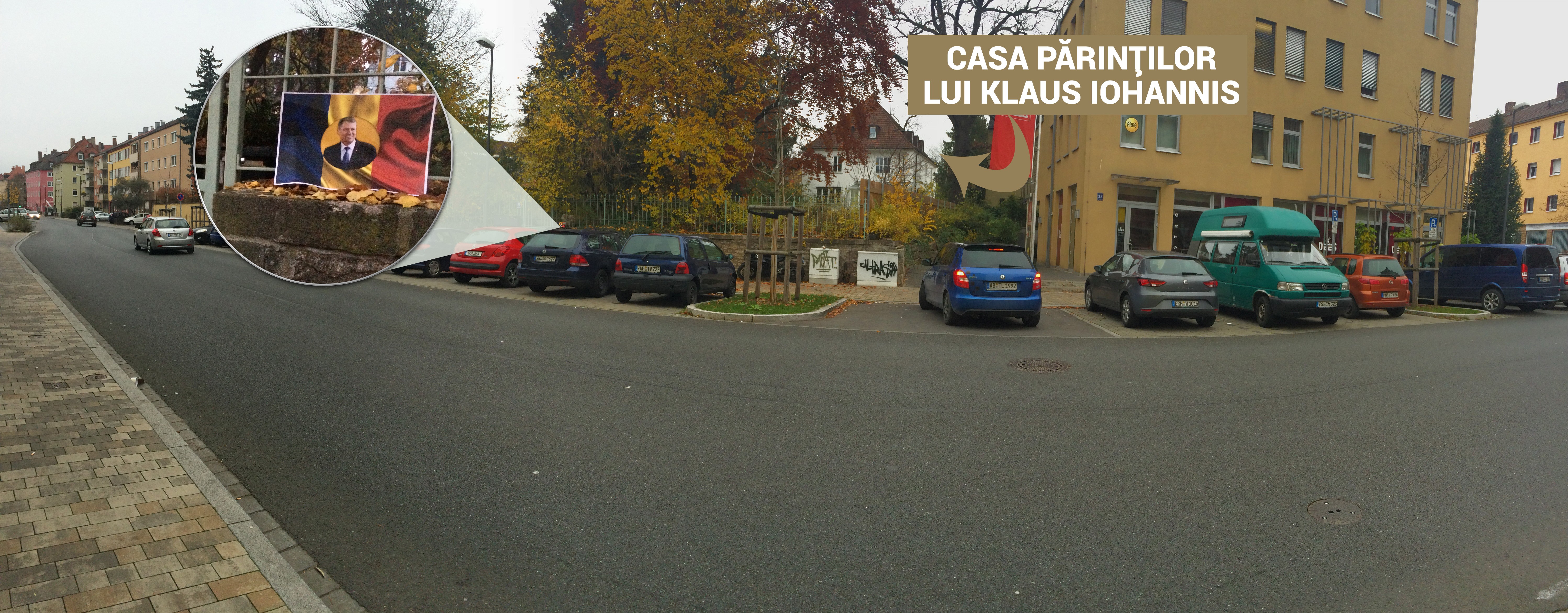 Pe gardul casei din Wurzburg, un simpatizant al lui Iohannis, cu siguranta roman, a lipit un mic steag al tarii noastre, cu chipul presedintelui ales pe post de stema.