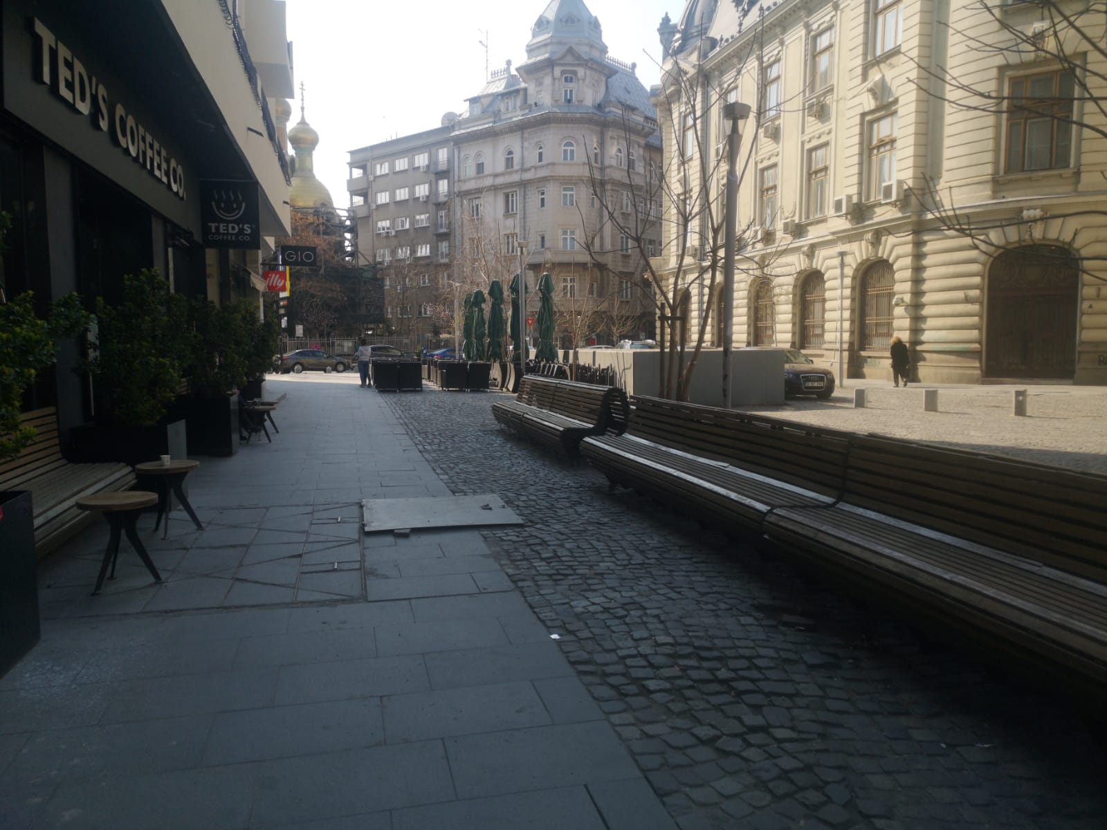 Doar că așa ceva devenise deja imposibil, iar terasele cochete din preajma Băncii Naționale și de pe străduțele Centrului Vechi aveau un singur lucru în comun: scaunele puse pe mese și ușile