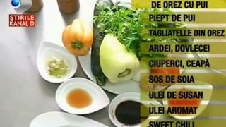 Vă plac mâncărurile asiatice şi doriţi să le gătiţi şi la dumneavoastră acasă? Ei bine, vă dăm noi.. o idee: taliatele de orez, cu pui şi legume, un adevărat deliciu aromat şi uşor.. de preparat. ##VIDEO12990##