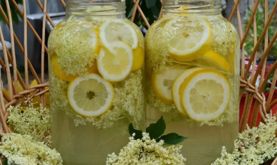 Mai întâi, se pun florile de soc într-un borcan de 10 litri, apoi se adaugă apa și lămâile tăiate felii și stoarse bine. Amestecați foarte bine și lăsați borcanul acoperit până a doua zi.