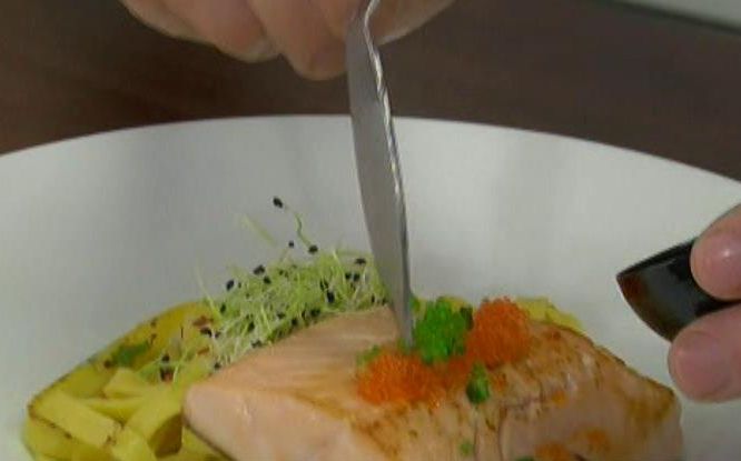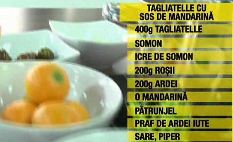 Vreţi să gătiţi ceva special pentru cină dar sunteţi în pană de idei? Pastele sunt mereu alegerea perfectă. Vă prezentăm o reţetă simplă şi rapidă de tagliatelle cu somon şi sos de mandarine. ##VIDEO30880##