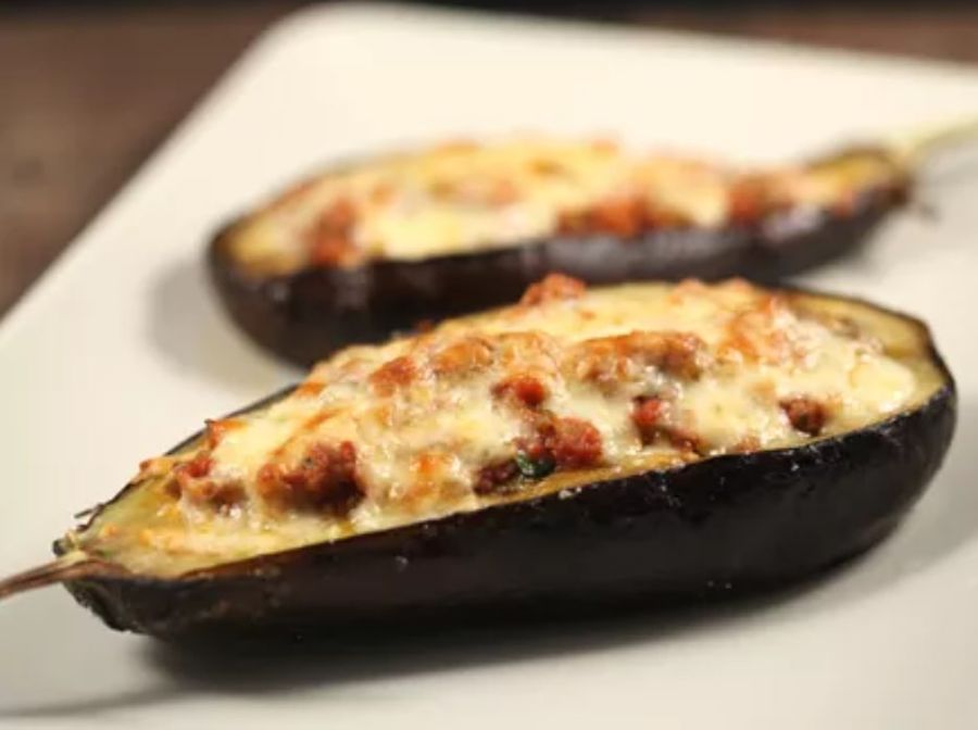 Mai întâi, vinetele se spală, se şterg şi se taie jumătăţi. Se scoate miezul cu o linguriţă, cu atenţie să nu se perforeze peretele vinetei şi se condimentează cu sare. Mai apoi, vinetele se lasă la scurs cu gura în jos, pentru a se elimina toate toxinele.