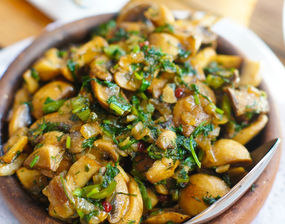 Ciuperci la tigaie cu usturoi și ceapă