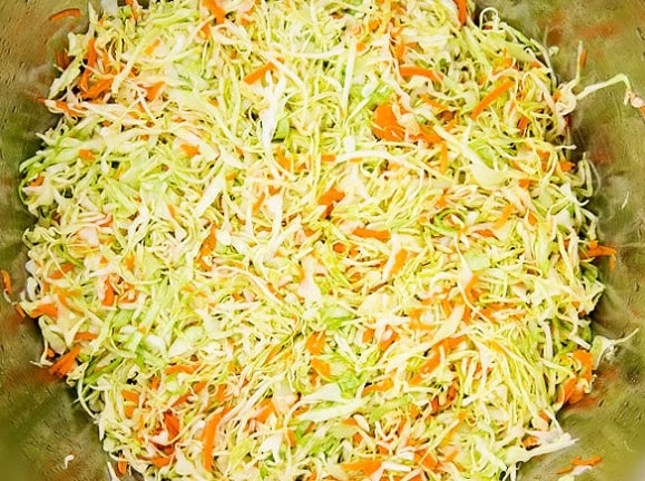 Începe cu varza, care se curăță de frunzele exterioare, se spală apoi se toacă fin la cuțit, pe răzătoare sau la robot.