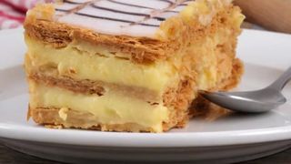 În crema de vanilie începem să încorporăm frișca puțin câte puțin. Asamblăm prăjitura. Peste prima foaie se pune cremă, apoi se acoperă cu următoarea. Continuăm astfel până la ultima foaie. Pe aceasta din urmă punem glazura.