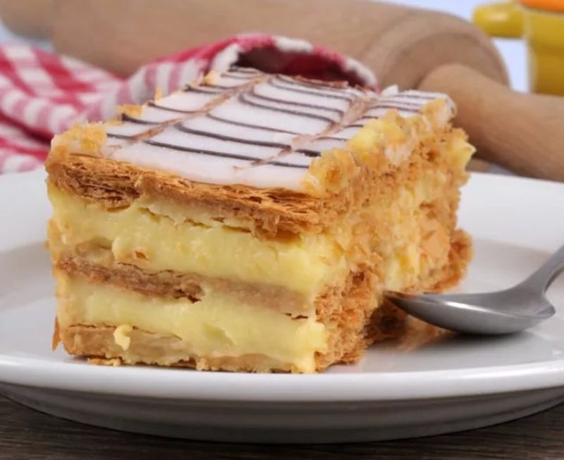 Mai întâi, foile de aluat se întind și se înțeapă cu o furculiță. Se folosesc trei foi de aluat. Se coc în cuptorul preîncălzit la 200 de grade Celsius, timp de 10 minute.