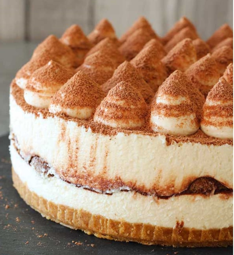 Apoi, într-un bol, se amestecă mascarpone, ricotta, zahăr și lichior până se omogenizează. Peste amestecul de brânză se pune frișca, încorporându-se treptat cu o spatulă.