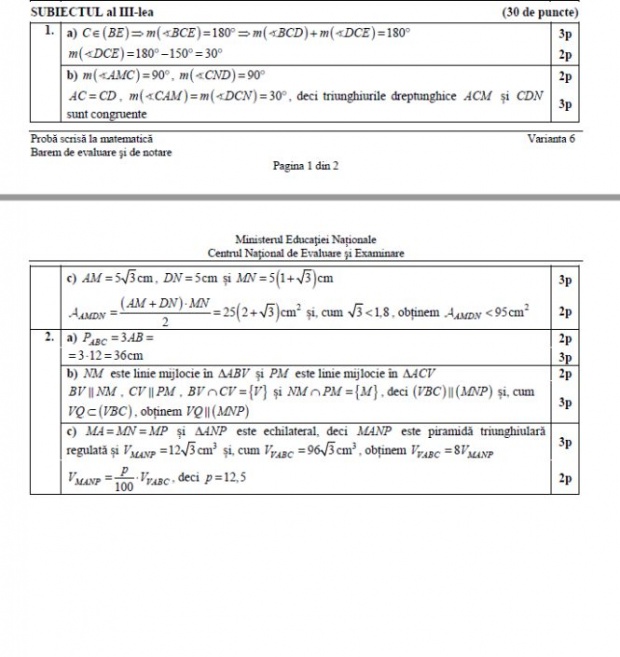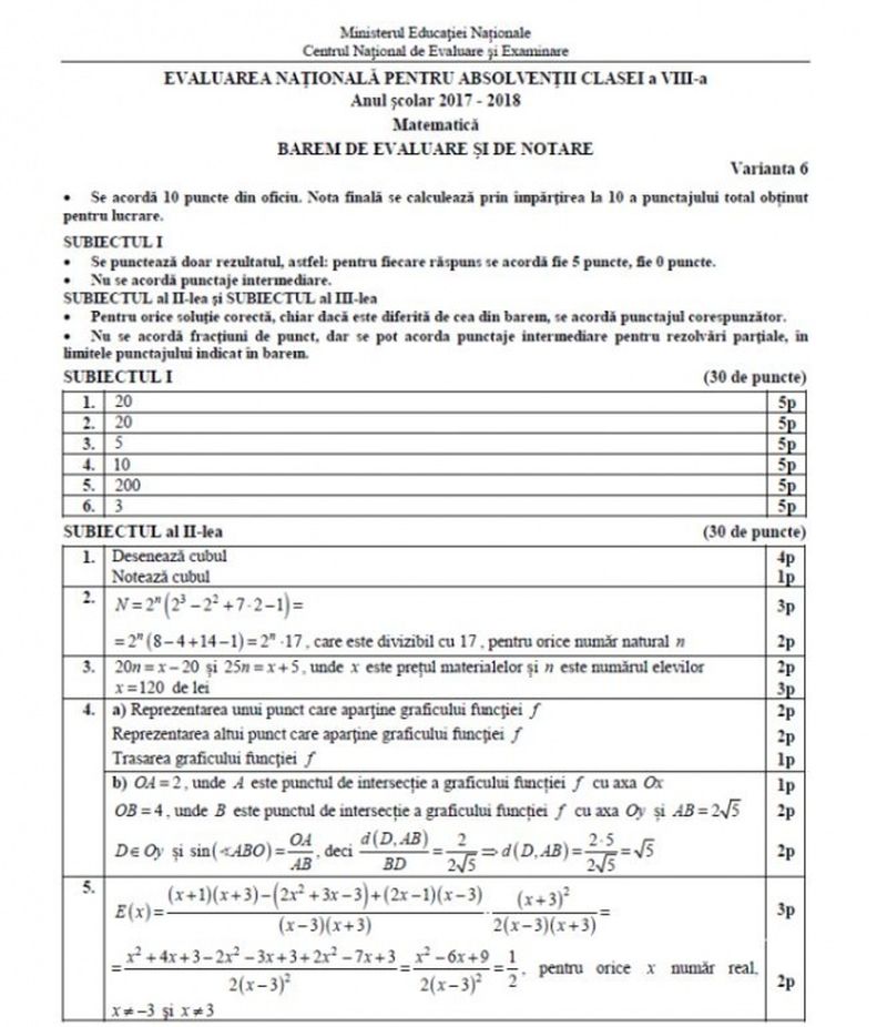 6 din 6 | Rezolvarea subiectelor la matematică la Evaluarea națională. BAREMUL DE CORECTARE