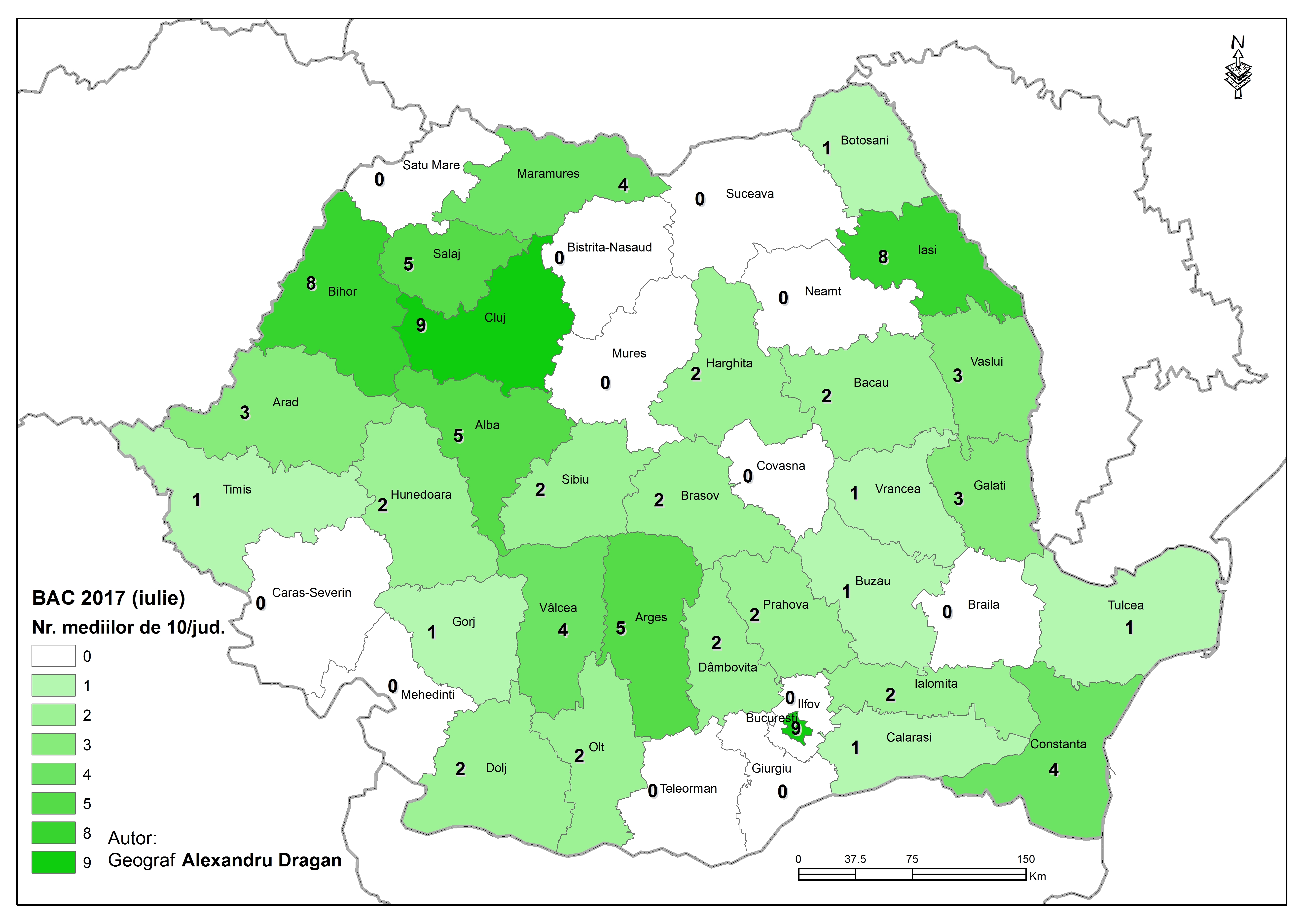 UPDATE: Harta mediilor de 10, pe judete, la examenul de Bacalaureat