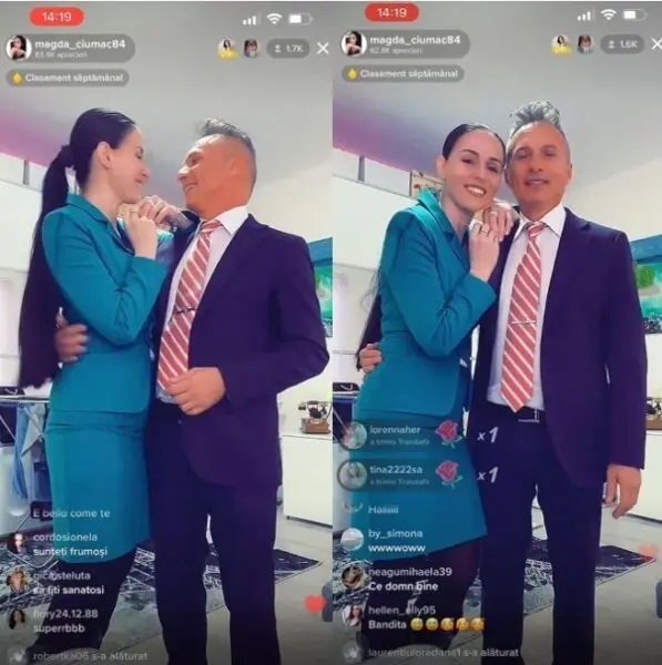 Prima dată, fosta vedetă OTV nu dorea să-l facă cunoscut pe soțul ei, însă s-a săturat să fie acuzată că partenerul ei de viață este un domn în vârstă. Așa se face că și-a rugat soțul să-și facă apariția într-un live pe Tik Tok. „Vedeți, mă, ce bărbat am?!(…) Eu, de trei ani, nu voiam să mai arăt pe nimeni.(…) Eu nu stau cu moși. Dacă a trecut vreun moș prin viața mea, a fost pentru că s-a îndrăgostit el sau că așa a fost să fie și pentru că așa a fost să fie.