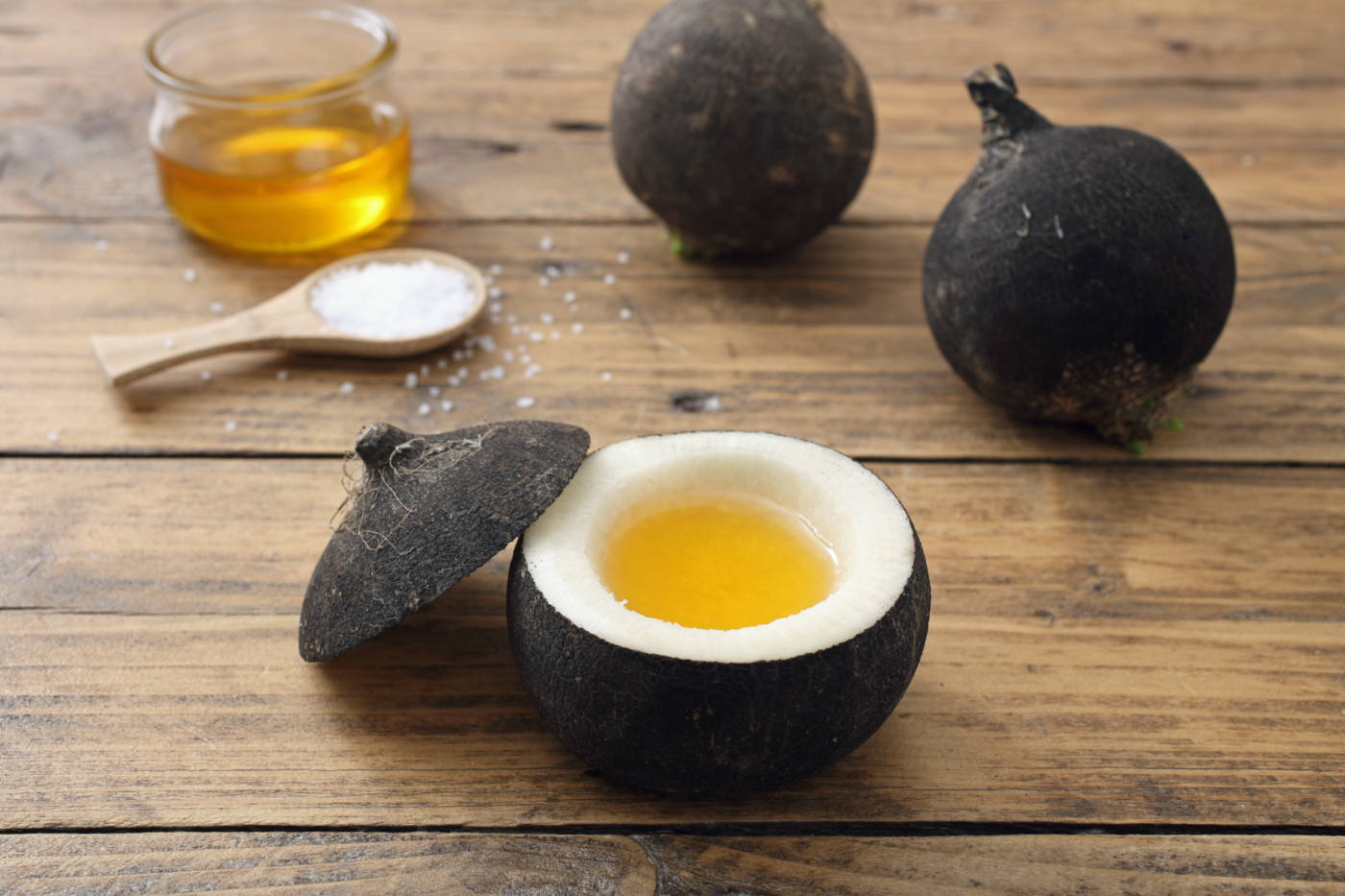 Rădăcinile uscate de ridiche neagră par a fi benefice în caz de bronșită ușoară. Se spune că sucul de ridiche neagră (pe care îl puteți obține și cu un blender) contribuie la reducerea tulburărilor cardiovasculare și a anumitor tipuri de cancer datorită glucozinolaților și izotiocianaților pe care îi conține