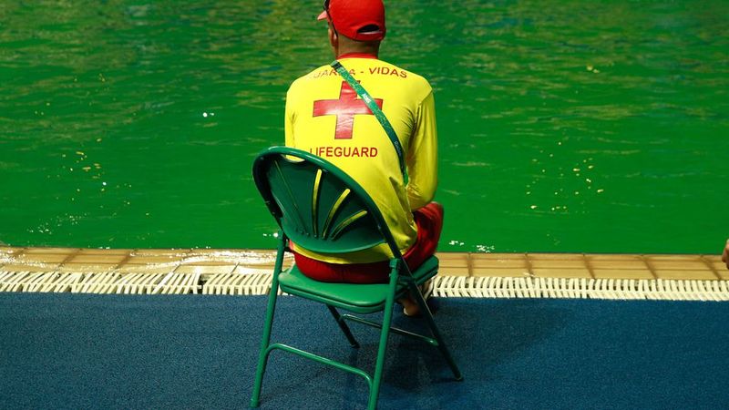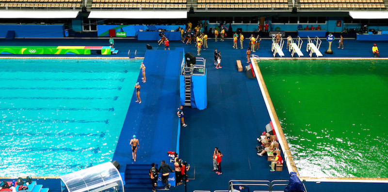 5 din 5 | Rio 2016: Apa din piscina a devenit verde, dupa ce luni avea culoarea albastra. Organizatorii nu stiu de ce