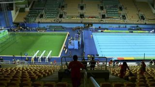 3 din 5 | Rio 2016: Apa din piscina a devenit verde, dupa ce luni avea culoarea albastra. Organizatorii nu stiu de ce
