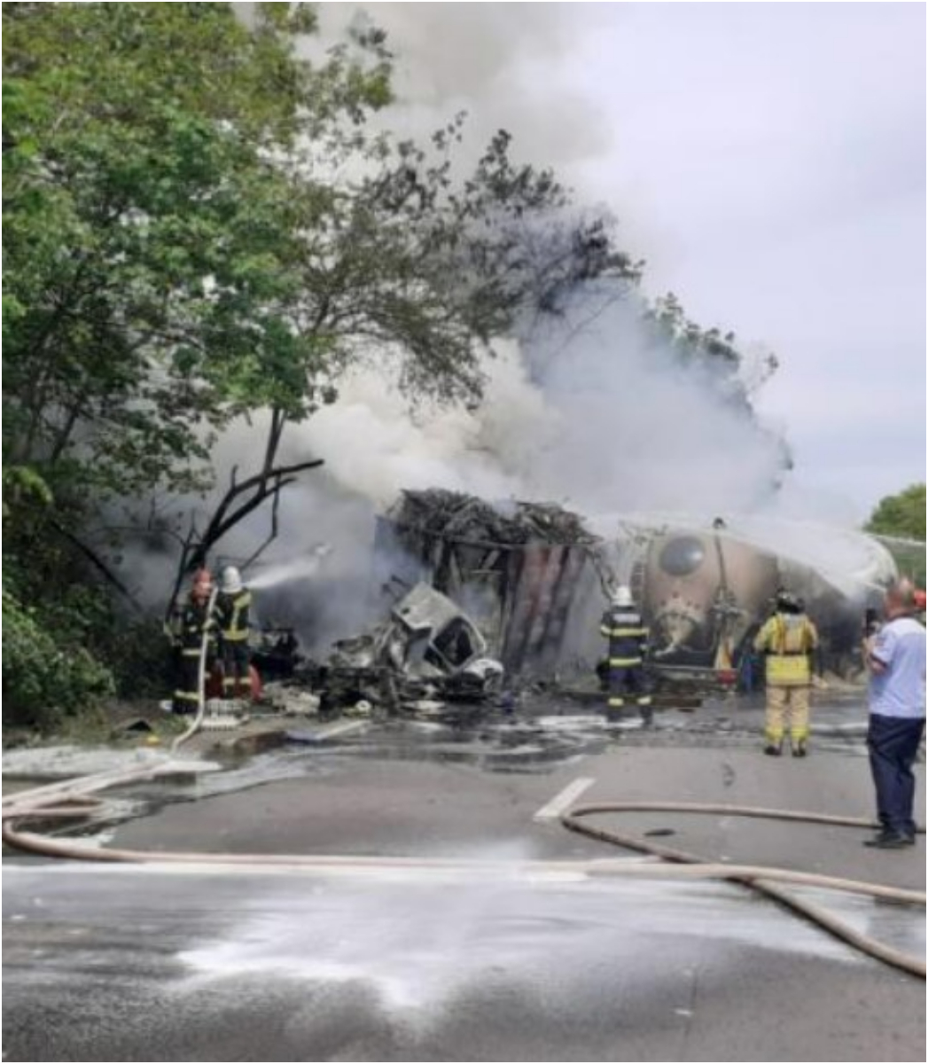 Sunt alertate 5 autospeciale de stingere cu apa și spumă, echipajul special de Salvatori, o autospecială de descarcerare, echipajul CBRN și o ambulanță SMURD și un echipaj SABIF.”Autovehiculele implicate în accidentul rutier ard în totalitate, în acest moment se lucrează la localizarea incendiului. Până în acest moment nu avem informații privind conținutul transportului. Traficul în zonă este restricționat. Intervenția este în desfășurare”, spun reprezentanții ISU București-Ilfov.
