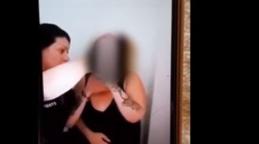 O tânără este umilită și terorizată de o altă femeie, care o forțează să bea un pahar cu urină.