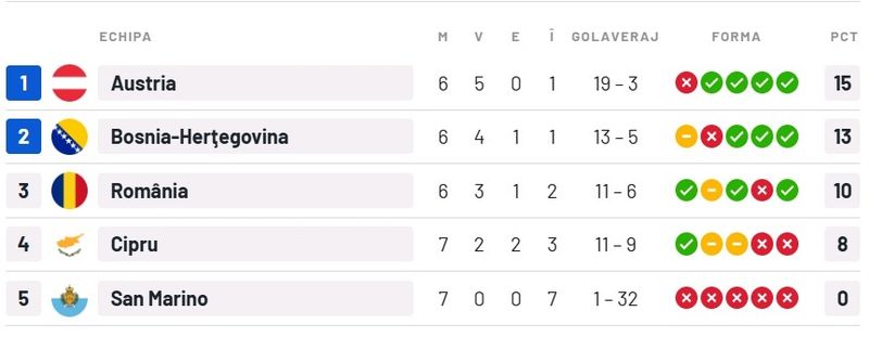 Următorul meci al tricolorilor va avea loc pe data de 15 noiembrie în Bosnia-Herțegovina, care se află cu 3 puncte în fața României în clasamentul grupei.