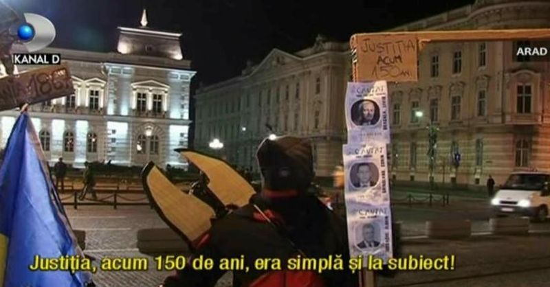 Sute de mii de oameni sunt in strada de o saptamana. Din multimea care protesteaza nu au lipsit "moartea cu coasa", nici calaul justitiar! ##VIDEO45682##