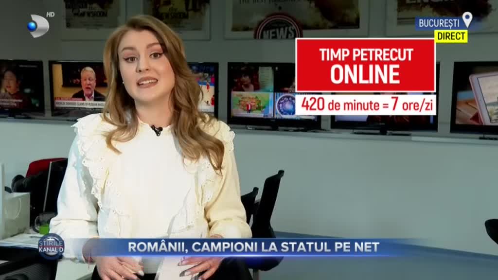 Românii petrec mai mult de un sfert din zi pe internet. Potrivit unui studiu, petrecem 420 de minute pe zi, adică șapte ore. Nou este faptul că am ajuns să-i depășim pe americani la acest capitol. În cazul acestora, media este de șase ore și 59 de minute.