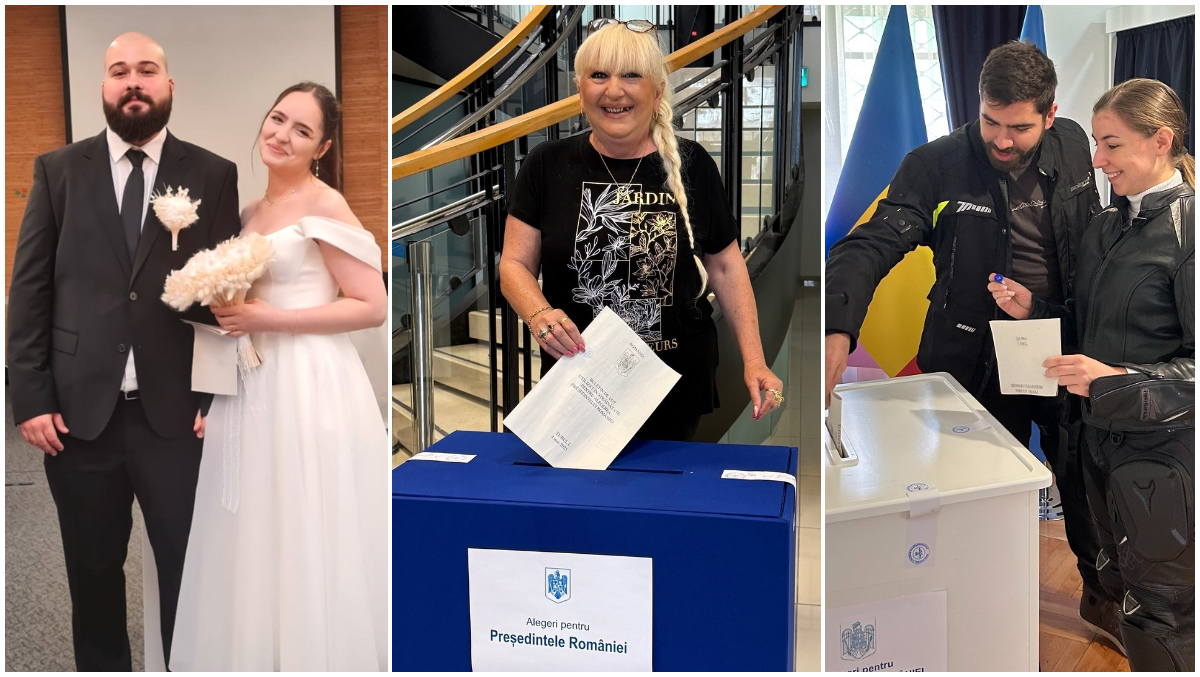 "Chiar în ziua nunții, doi tineri români din Germania au ales să vină la vot. Felicitări pentru implicare și responsabilitate! Casă de piatră și o viață minunată împreună", a transmis Ministerul Afacerilor Externe.