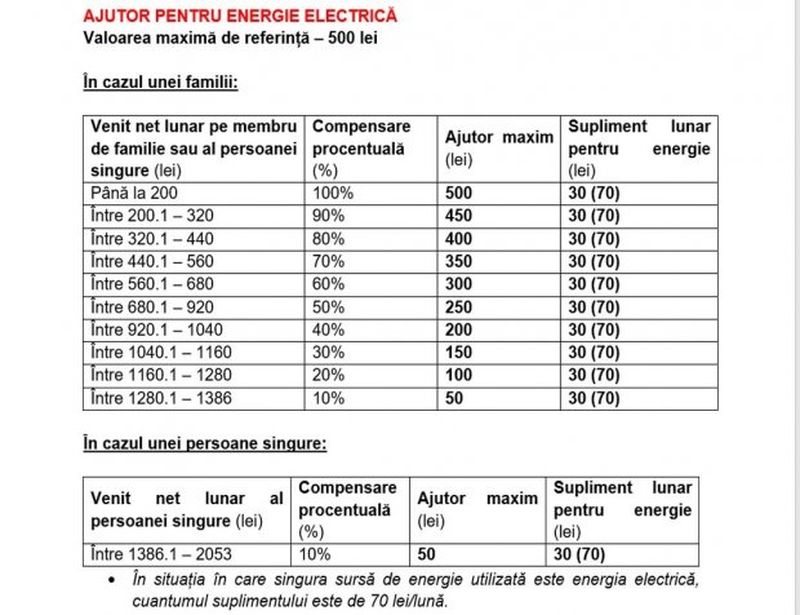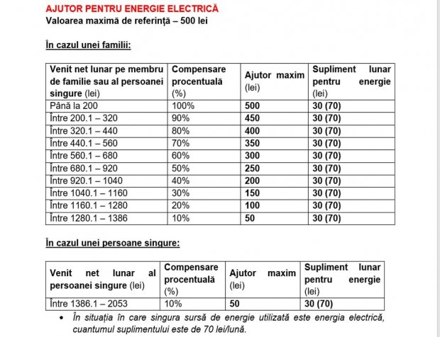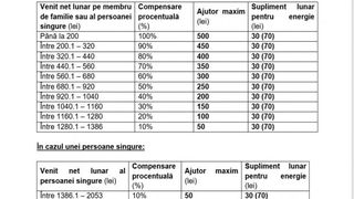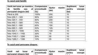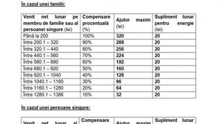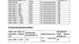 Valorile maxime acordate sunt:250 lei (gaze naturale), 500 lei (energie electrică) şi 320 lei (alte surse de încălzire).