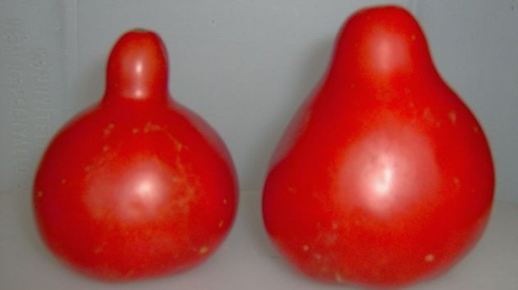 Roșiile cu moț. ”Acel mucron din vârful tomatei este generat de doi factori, genetic şi chimic. Cel indus genetic apare la hibridul bulgăresc Prekos, care este cultivat în România. Această tomată, în mod natural, foarte rar formează acest mucron care oricum nu este unul pronunţat. Deci, genetic avem puţine creaţii care manifestă această caracteristică. De regulă, la noi, tomatele care prezintă acest mucron au la bază substanţe chimice pentru polenizare sau pentru maturare forţată a fructelor”, spune cercetătorul Costel Vânătoru, de la Staţiunea de Cercetare Legumicolă Buzău, pentru adevarul.ro.