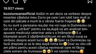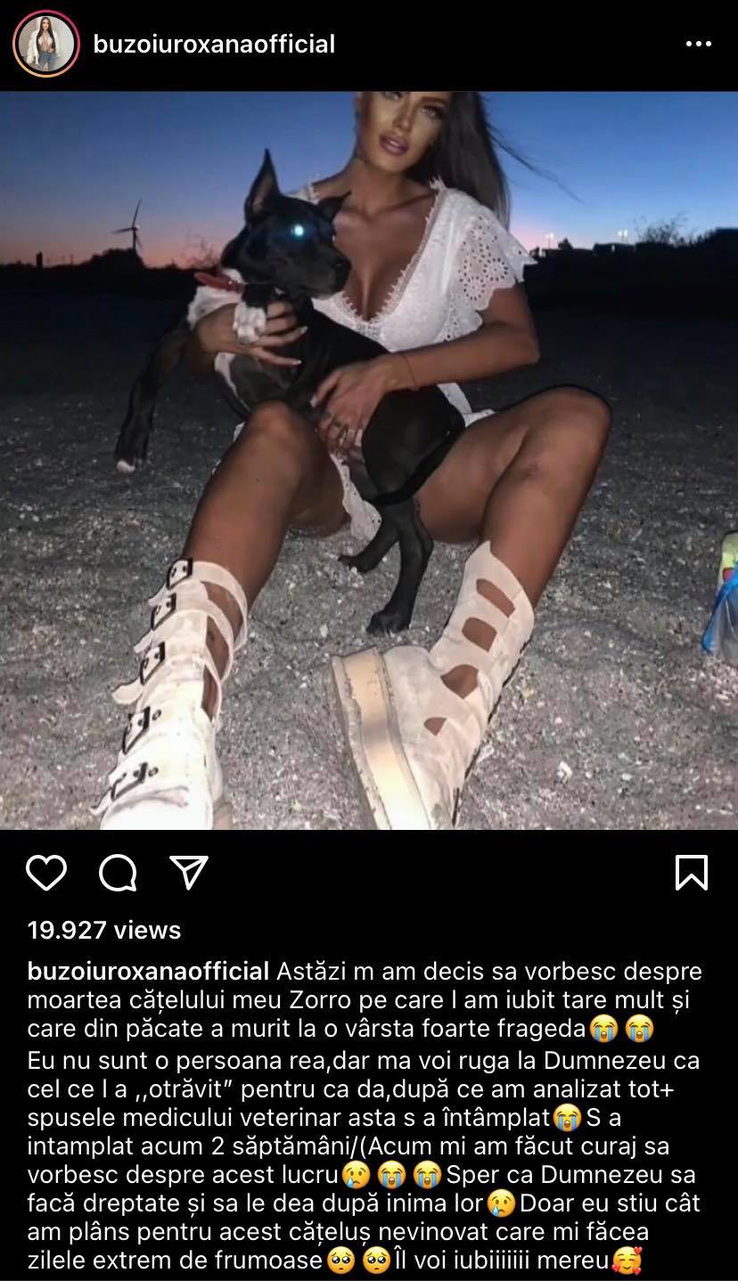 Cățelul Roxanei Buzoiu a murit otrăvit