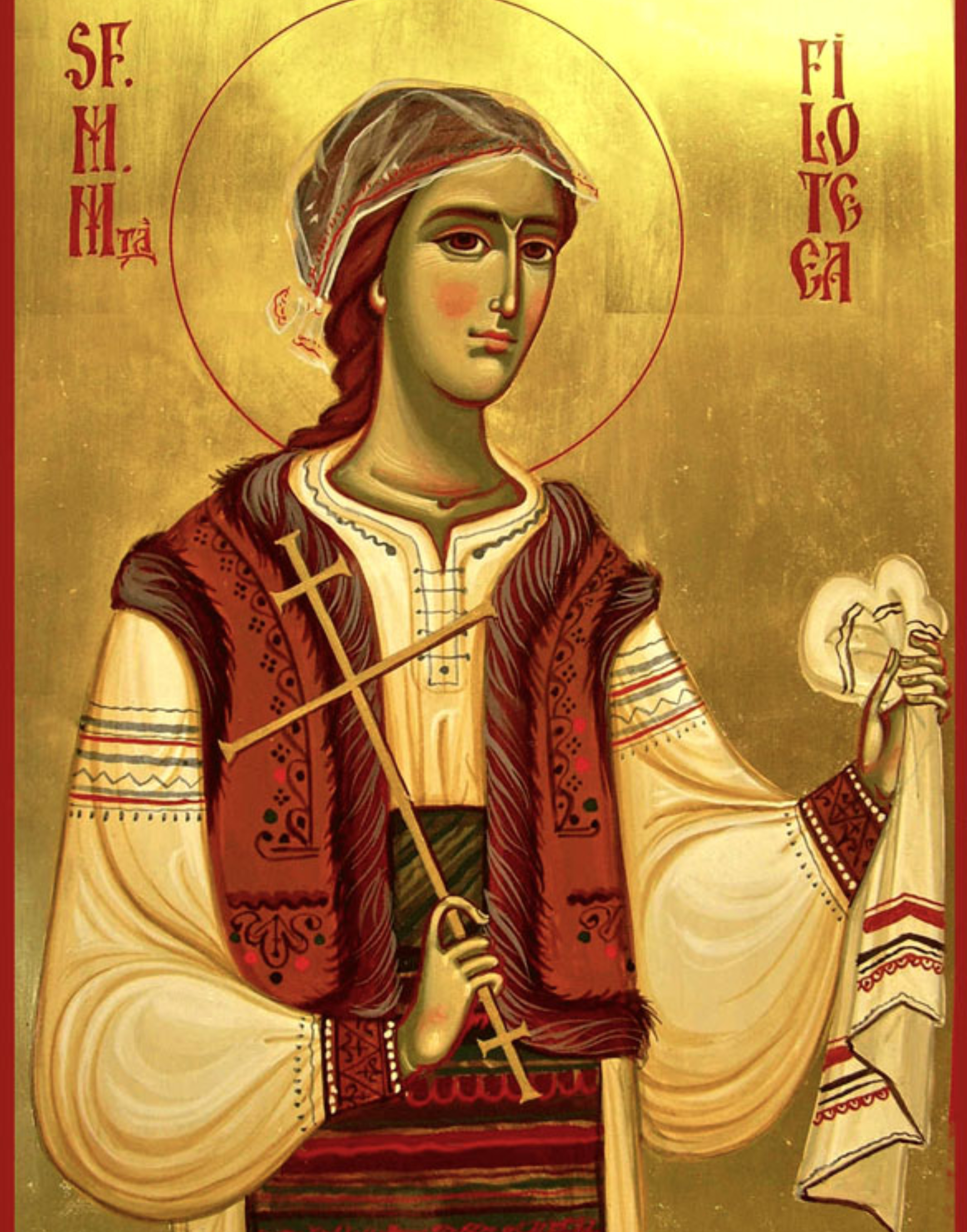 Sfânta Muceniță Filofteia este una dintre cele mai tinere sfinte din Calendarul ortodox, ea trecând la cele veșnice la vârsta de doar 12 ani. Numele său, Filofteia sau Filoteia, este de origine grecească și înseamnă „iubitoare de Dumnezeu”. Ea a trăit la începutul secolului al XIII-lea, în orașul Tarnovo din Bulgaria, potrivit crestinortodox.ro
