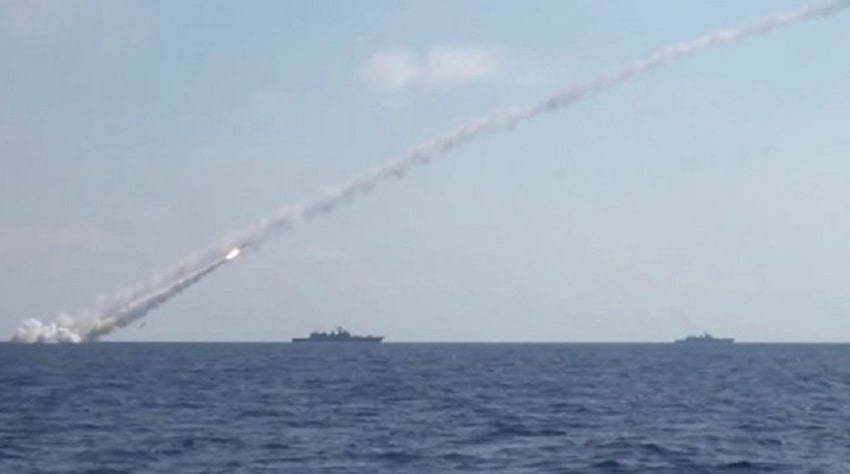 Ministerul rus al Apărării a publicat, vineri, un videoclip în care se observă o salvă de rachete de tip Kalibr care ies din apele mării şi trec dincolo de orizont spre ceea ce ministerul a invocat că reprezintă ţinte militare ucrainene.