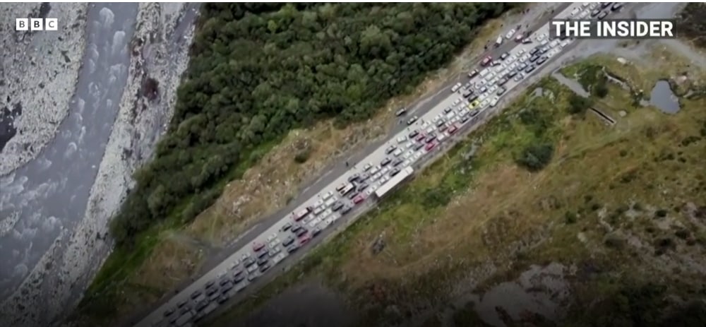 Imaginile recente din satelit au arătat cozi de kilometri la granița dintre Rusia și Georgia, iar cei care ajung la punctul de frontieră par epuizați, după cum transmite un corespondent BBC.